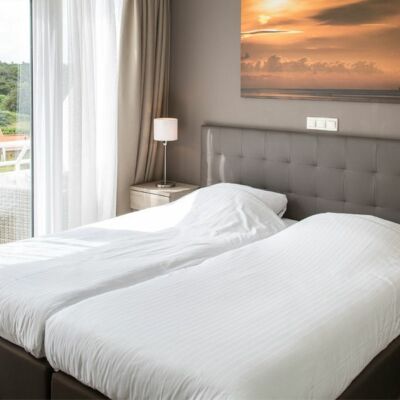 Luxurious and spacious apartment for 6 people (extra bed possible for 7th person). Living room, 3 bedrooms (two bedrooms indoors), spacious bathroom with bath, shower, separate toilet, fully equipped kitchen including dishwasher, microwave, coffee maker, kettle, air conditioning, spacious south-facing balcony. (70m2)